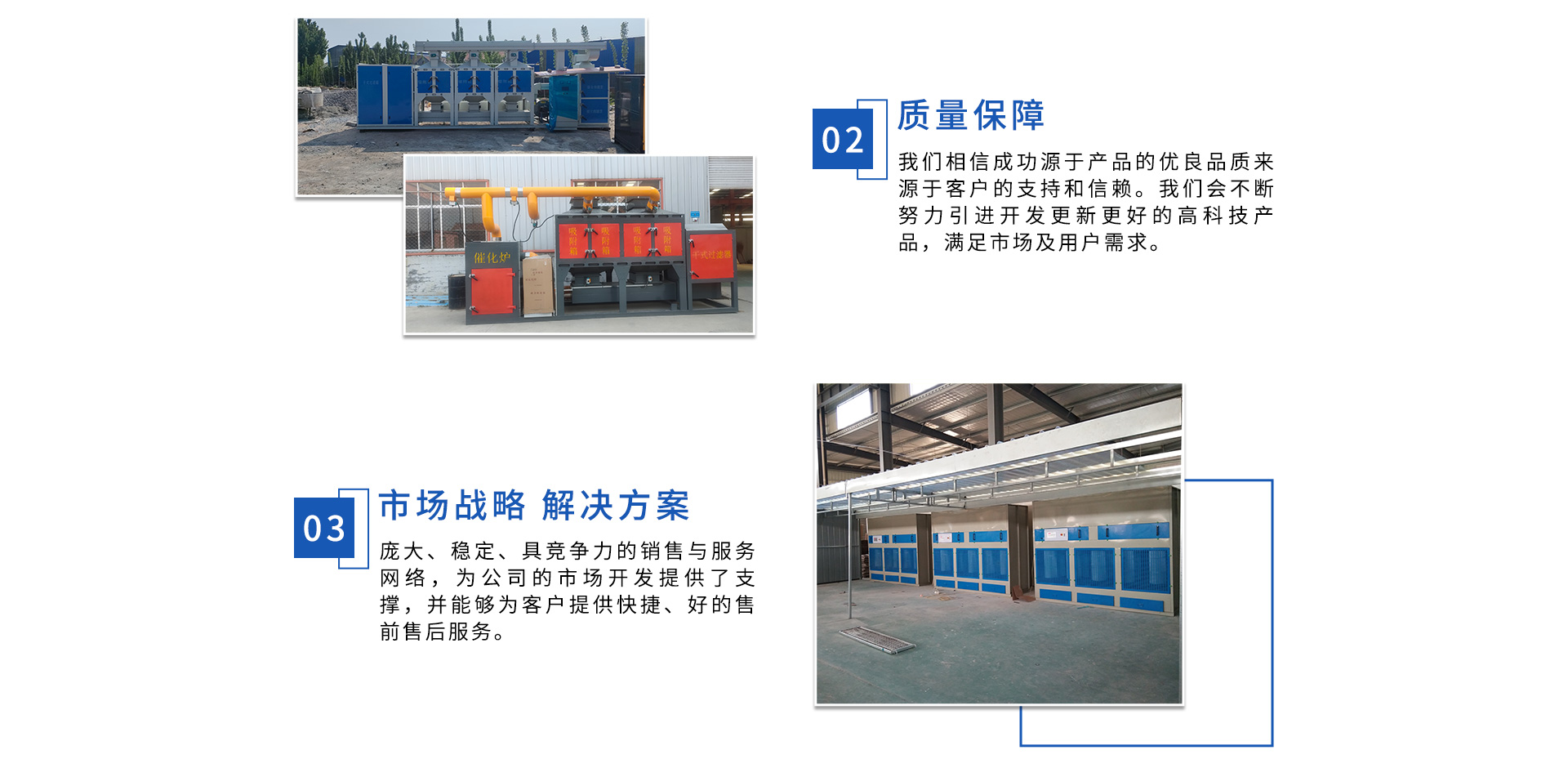 公司自成立以來,始終專注于工業(yè)廢氣、污水、粉塵等環(huán)境污染的治理,先后研發(fā)出催化燃燒設(shè)備、光氧催化廢氣處理設(shè)備、低溫等離子廢氣處理設(shè)備、粉塵處理-體化設(shè)備等一系列環(huán)保設(shè)備,產(chǎn)品先后通過ISO901質(zhì)量管理體系認(rèn)證、中國(guó)環(huán)境保護(hù)產(chǎn)品認(rèn)證。